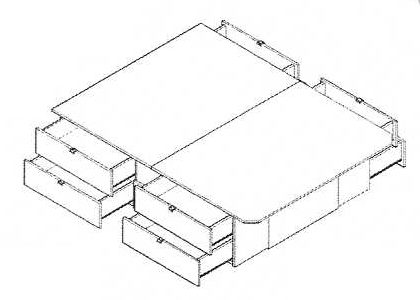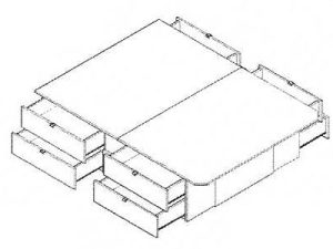 Base de Lit Plateforme en mélamine avec 8 tiroirs (4 chaque côté) de 20″ de hauteur.