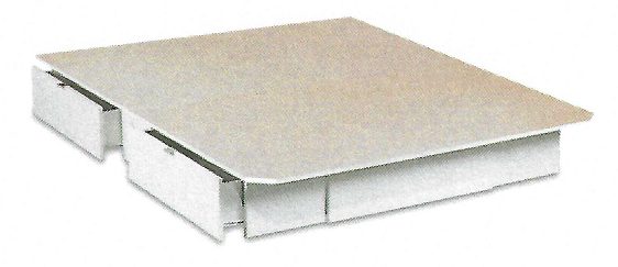 Base de Lit Plateforme avec 4 tiroirs (2 chaque côté) en mélamine de 10″ ou 13″ de hauteur.