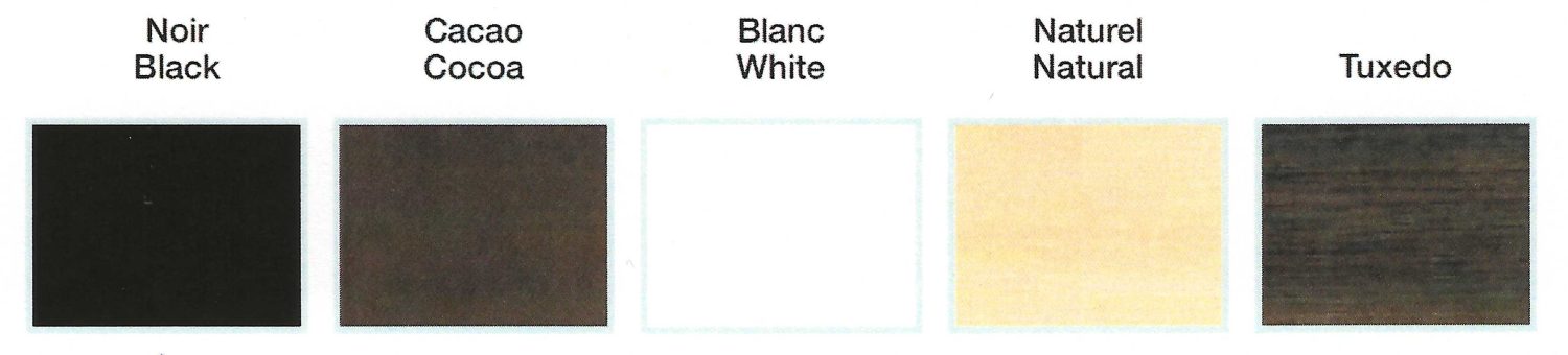 Couleurs disponibles: Blanc, Noir, Cacao, Naturel ou Tuxedo.