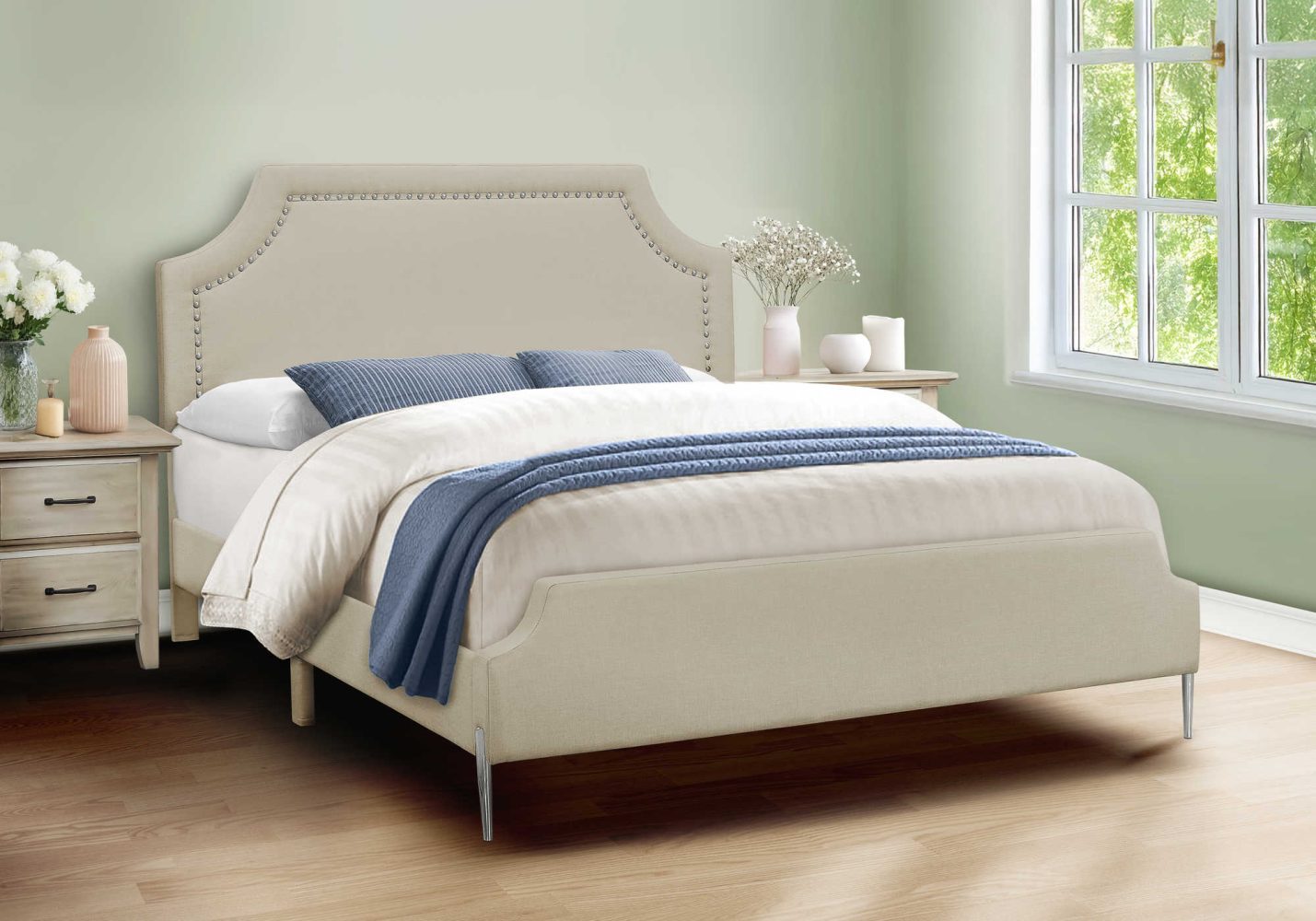 Lit complet en tissu Beige.