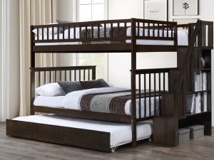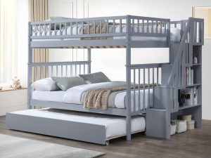 Lit Superposé Double/Double en Pin avec escalier de couleur Espresso, Gris ou Blanc.