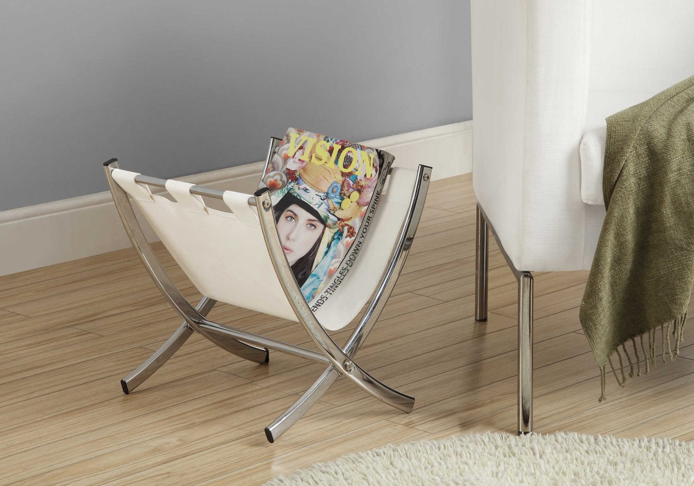 Support à Magazines en Simili-Cuir Blanc ou Noir.
