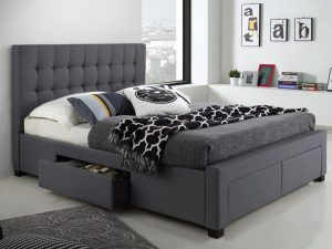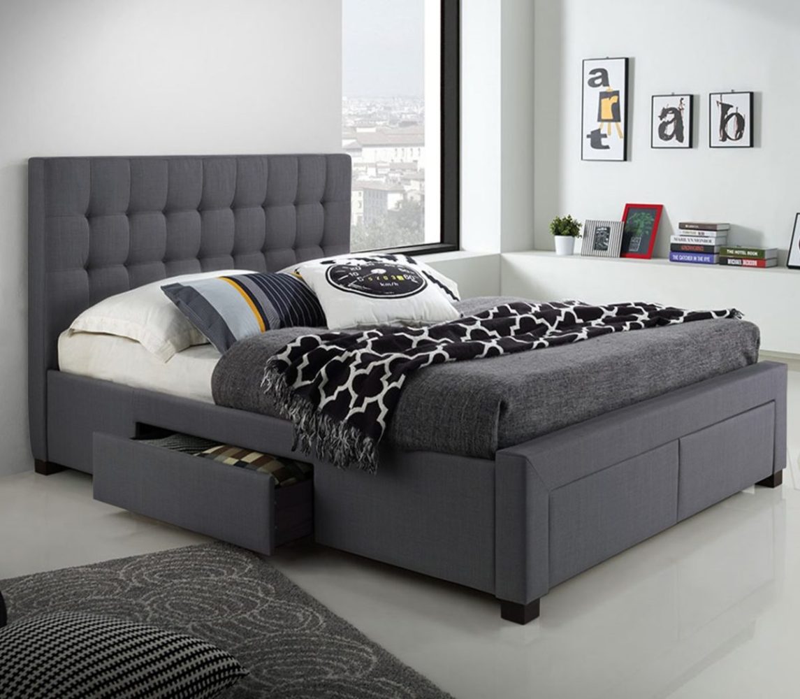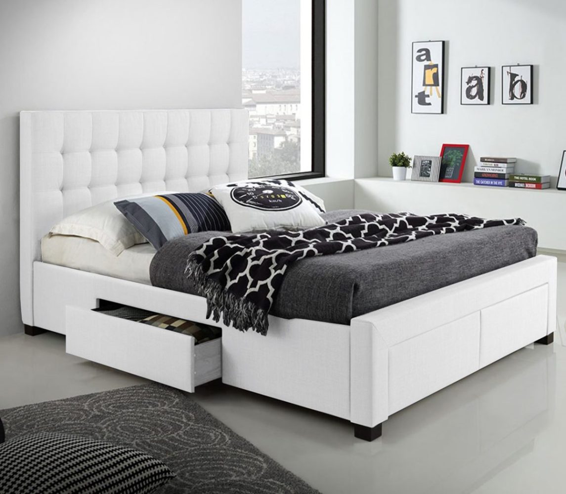 Lit Queen avec rangement en tissu Blanc ou Gris.