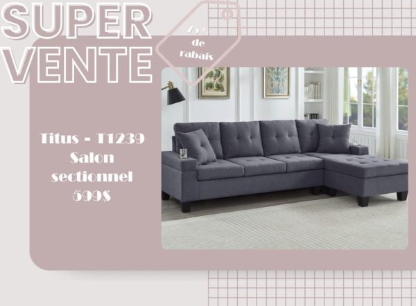 Salon sectionnel en tissu gris