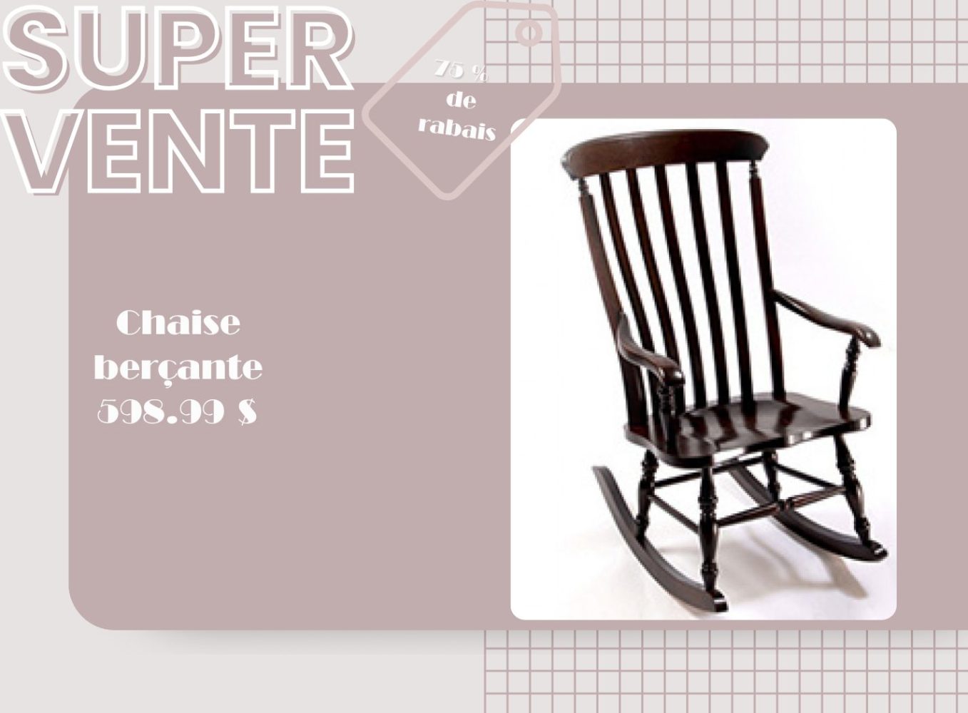 Vous pouvez magasiner plus de chaise berçante en cliquant ici.
