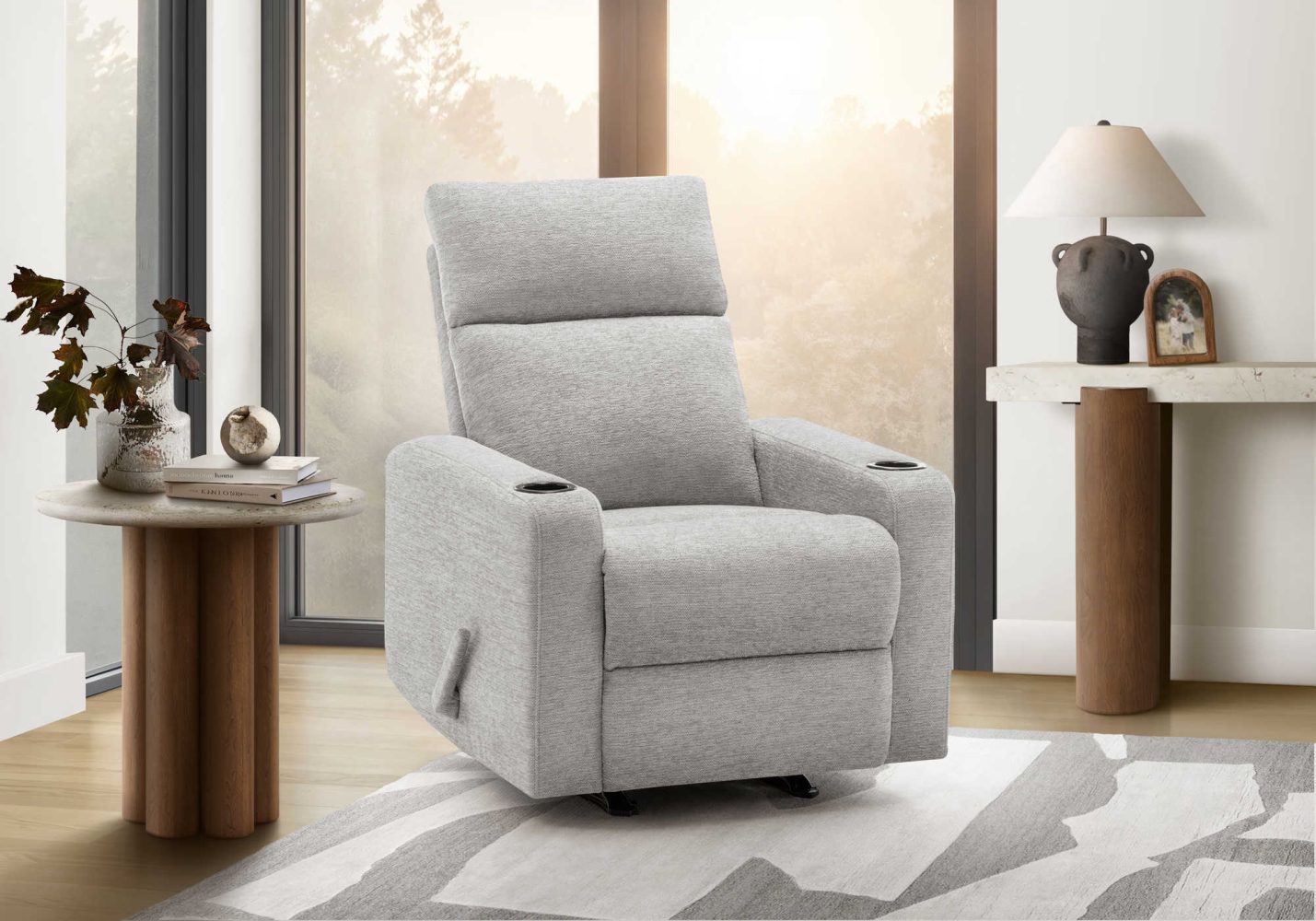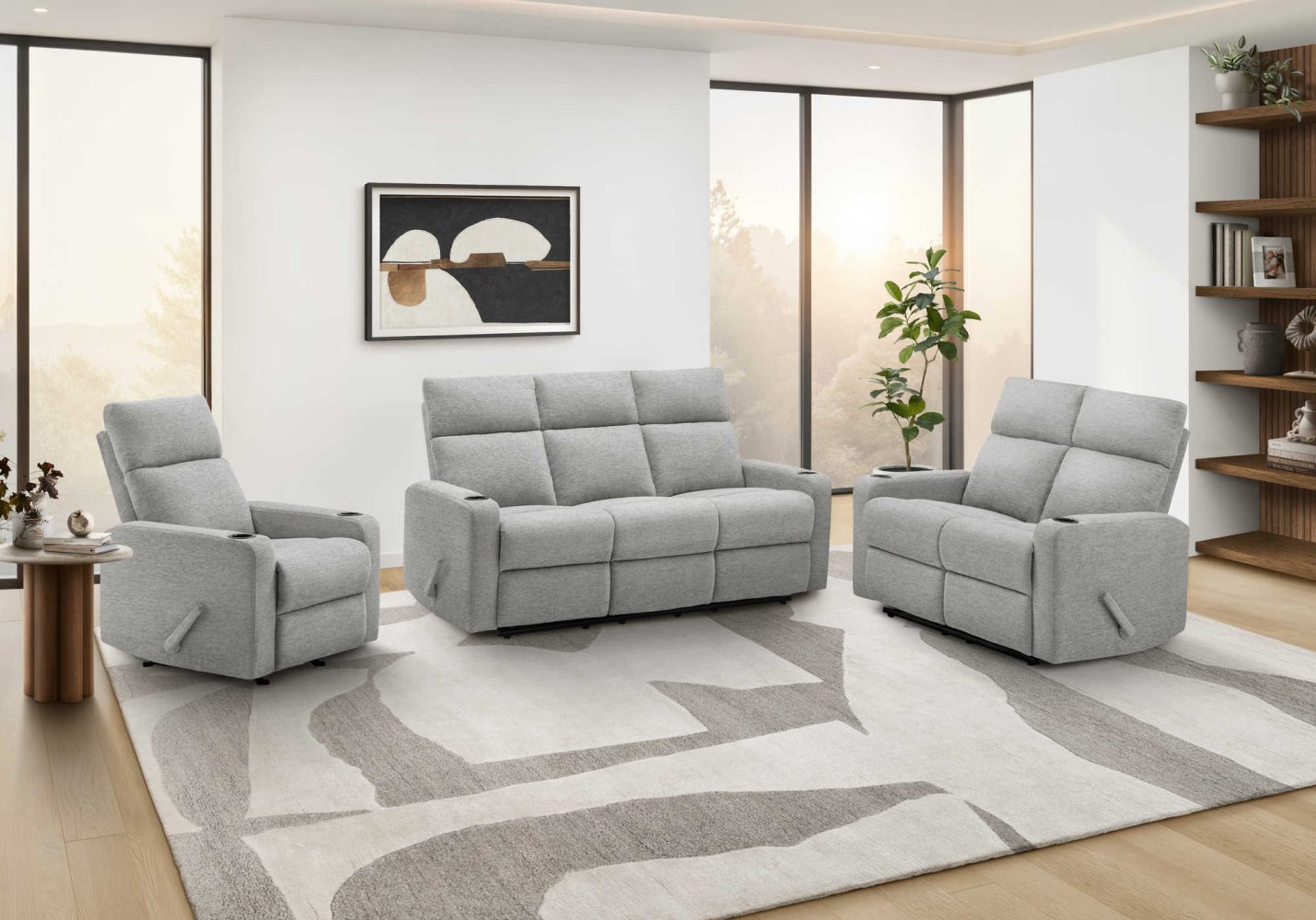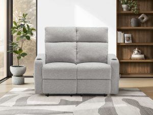 Salon inclinable en tissu Gris pâle avec porte-gobelets.