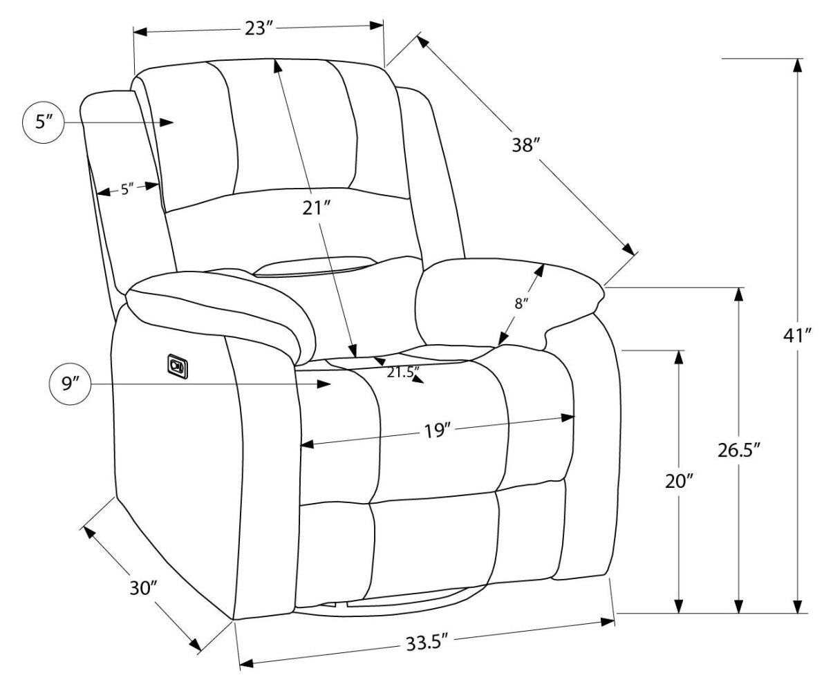 - Fauteuil : Largeur 33″½ x Profondeur 38″ x Hauteur 41″
