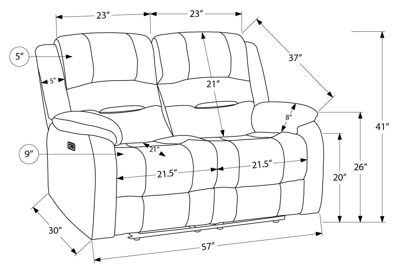 - Causeuse : Largeur 57″ x Profondeur 37″ x Hauteur 41″