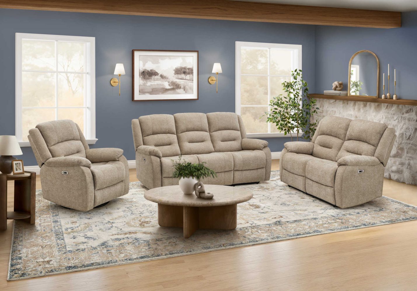 Salon inclinable électrique en tissu Beige avec prises USB.