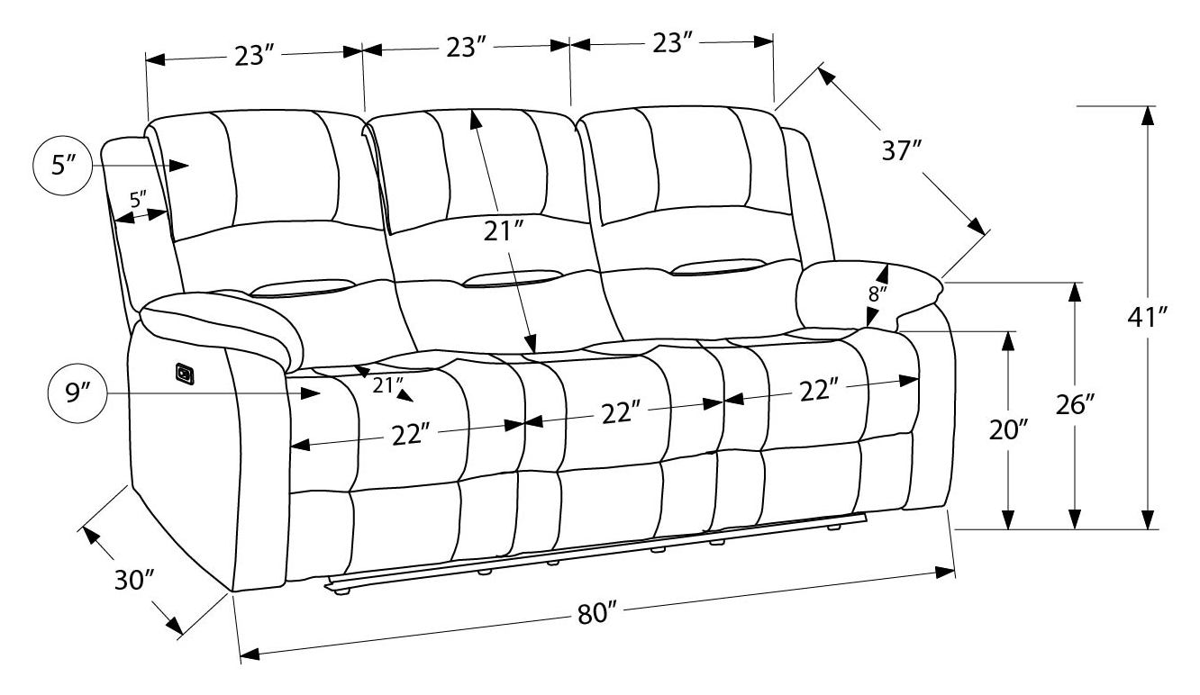 - Sofa : Largeur 80″ x Profondeur 37″ x Hauteur 41″