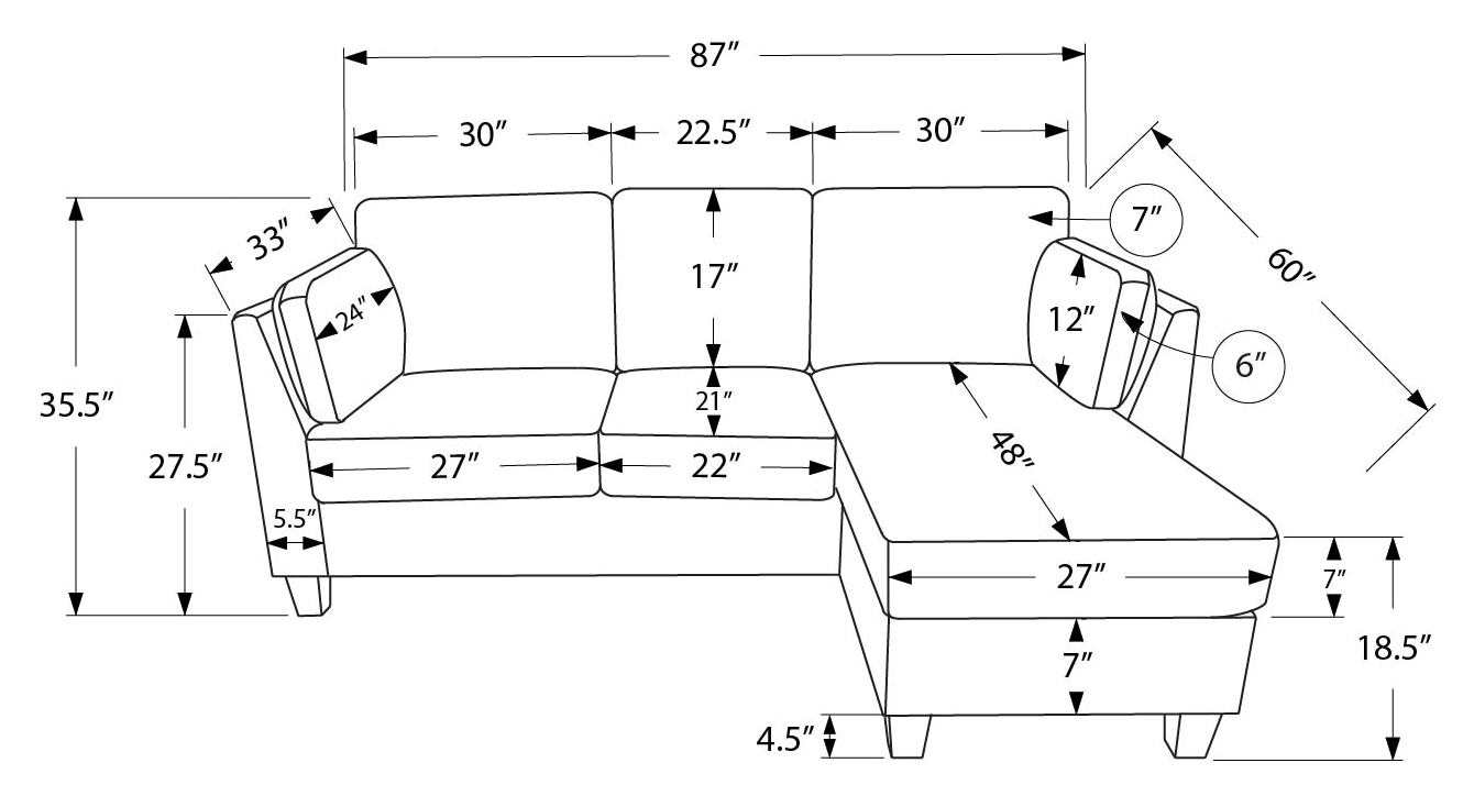- Largeur 87″ x Profondeur 60″ x Hauteur 35″½