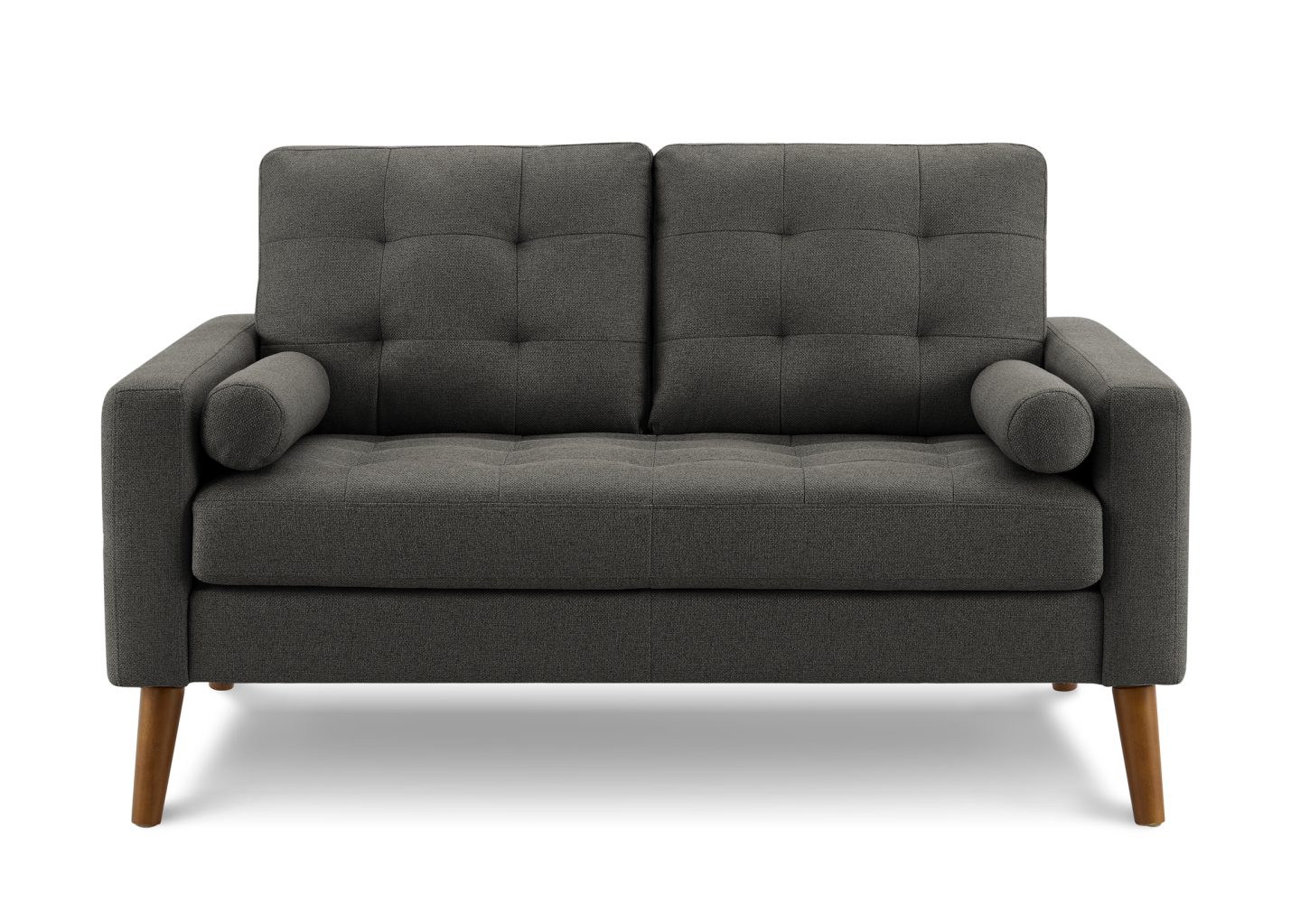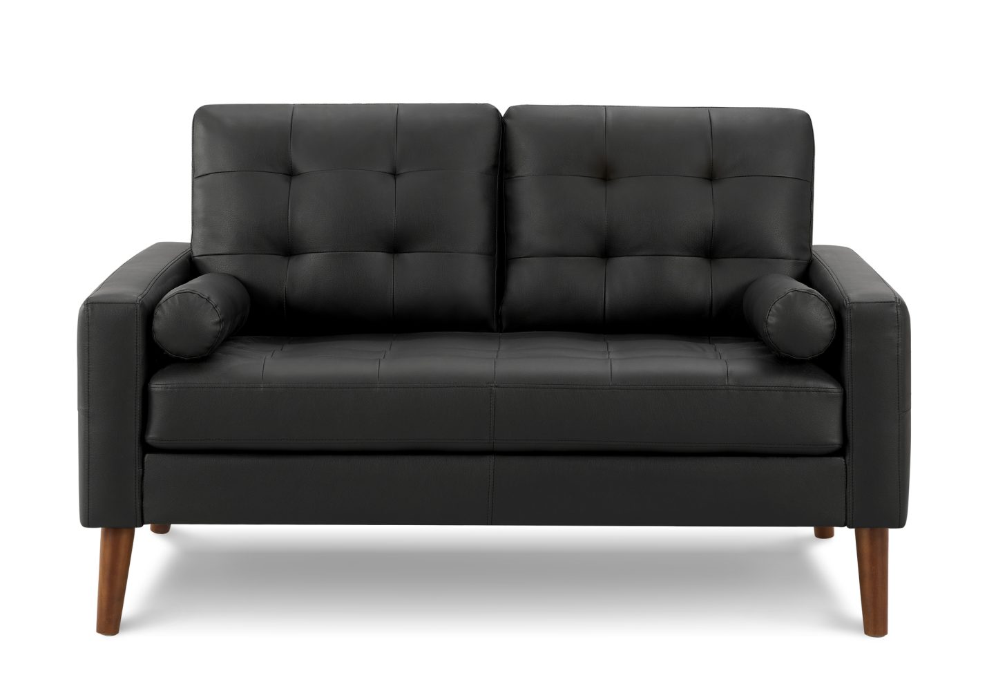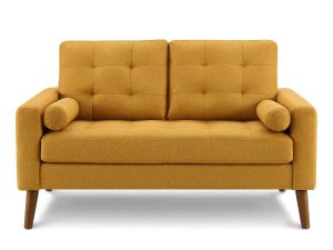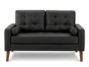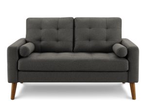 Causeuse en PU Noir ou en tissu Gris Foncé, Rouille ou Orange avec pattes en bois.